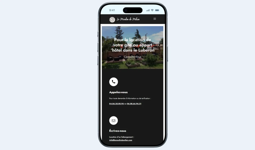 Chez Provensite, nous avons eu le plaisir de collaborer avec Le Moulin de Milan, un charmant complexe de chambres d’hôtes et gîtes de vacances, situé à Cheval-Blanc, entre les Alpilles et le Luberon. Le site devait mettre en valeur les différents services proposés : hébergement de qualité, location de salle pour événements, espace bien-être et piscine, tout en intégrant un outil de réservation en ligne performant.