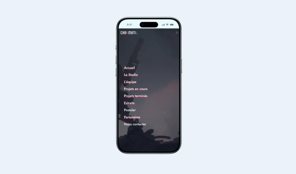 Nous avons commencé par des ateliers et échanges avec le studio pour comprendre leur vision artistique, leurs objectifs et la manière dont ils souhaitent communiquer avec leurs clients et partenaires. Cette phase a été essentielle pour concevoir un site cohérent avec l’ADN créatif de Chromatik Studio.